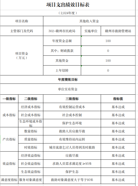 ⑺项目年度绩效目标:维护站内机构运转,对流浪乞讨人员开展人性化服务,确保站内安全。
